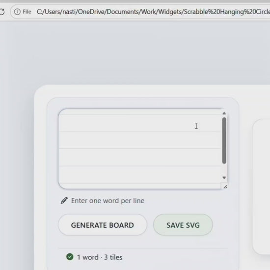 Create unlimited crossword-style ornaments in seconds with this easy-to-use online generator. Simply enter your names and instantly generate laser-ready SVG files for cutting.