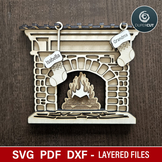 11 NAMES: Fireplace with Custom Stockings - SVG / DXF