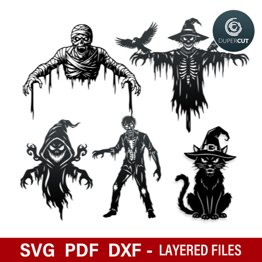 5 Designs: Halloween Silhouttes - SVG / DXF
